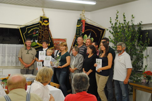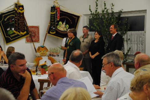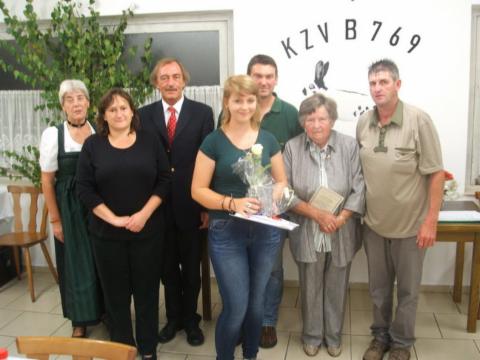 Die Ehrengäste und das geehrte Mitglied für 40 Jahre Vereinstreue. Die Jungzüchterin wurde ebenfalls geehrt für den Gewinn des Malwettbewerbs des ZDRK.