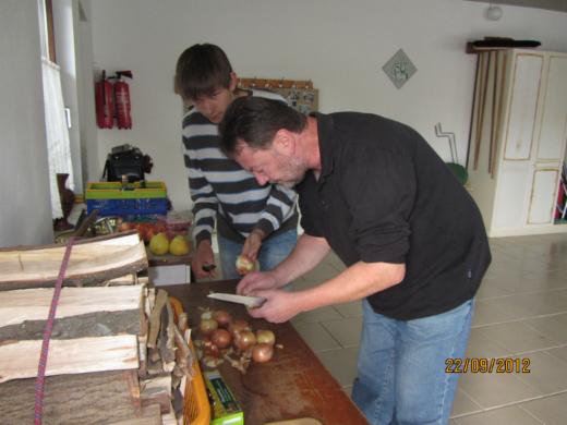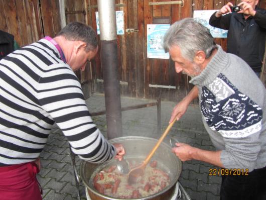 Die Vorbereitung zum Kesselfleisch. Chefkoch Günther bei der Arbeit