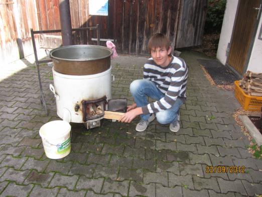 Jungzüchter Thomas beim anfeuern des Kessels.